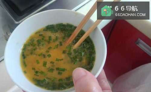 2将鸡蛋打匀,注意往一个方向转动筷子更加省力,如图