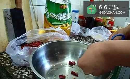 主料有植物油、干辣椒,一定要去了尾巴的干辣椒。
