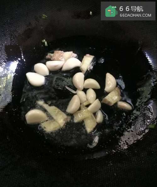 5炒锅里放油,放大蒜、生姜爆香。