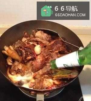 先油锅煎一下、大料啤酒放入!再放入高压锅更入味~