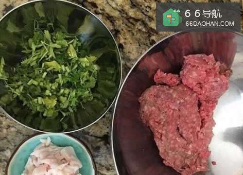 肥猪肉,香菜剁碎。