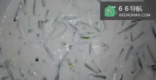 把糯米粉和粘米粉混合,加入切成小段的荞叶,拌成面糊;