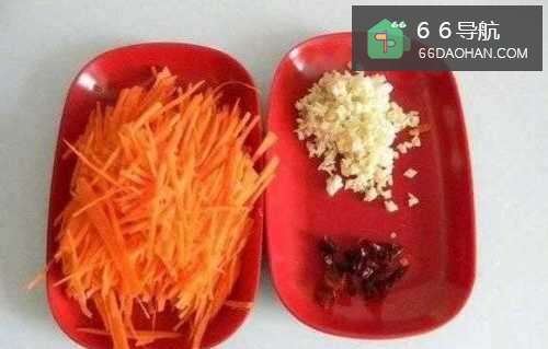 2胡萝卜洗净擦丝,小米椒切碎,大蒜切末,香菜切段;