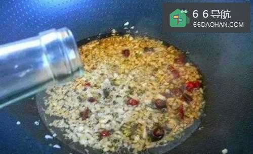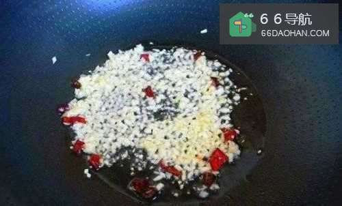 5起锅热油,放入蒜末、干辣椒煸香;
