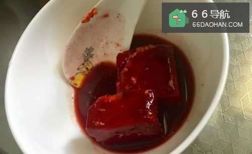 3在猪蹄焯水过程中可以将腐乳挖出来碾碎,加入一碗冷水,姜蒜切好备用!