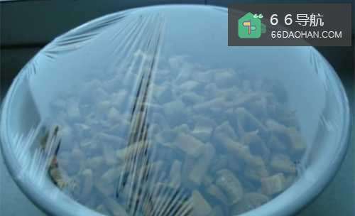 4把晒好的萝卜条开水洗去表面分浮尘,然后沥干。