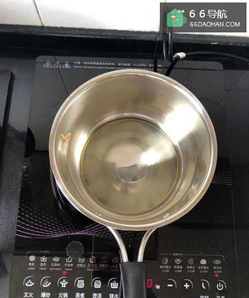 将玉米油倒进锅里,开小火加热到出现细小的纹路即可关火