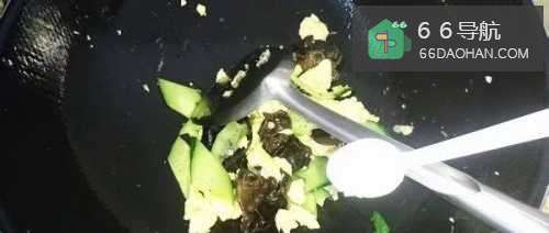 5倒入黄瓜翻炒几下,随即放入炒好的鸡蛋,一同翻炒。