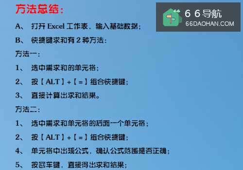 B、快捷键求和有2种方法