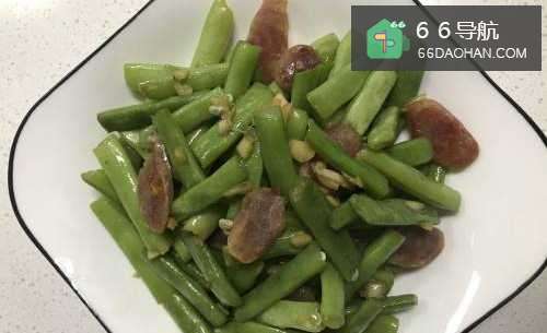 7关火起锅装盘,四季豆炒香肠就做好了。