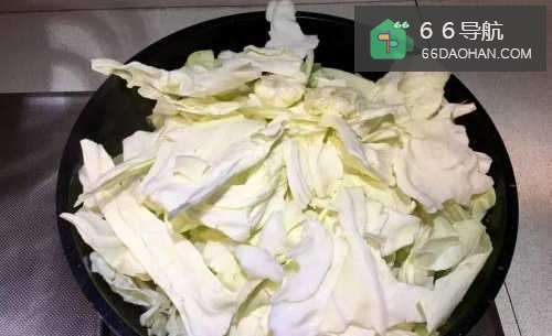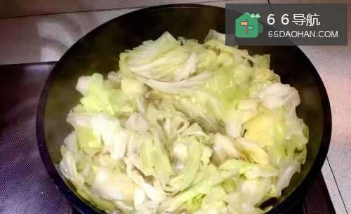 5原锅放入盐及蒜片后爆香,放入包心菜后迅速淋入约半杯热水