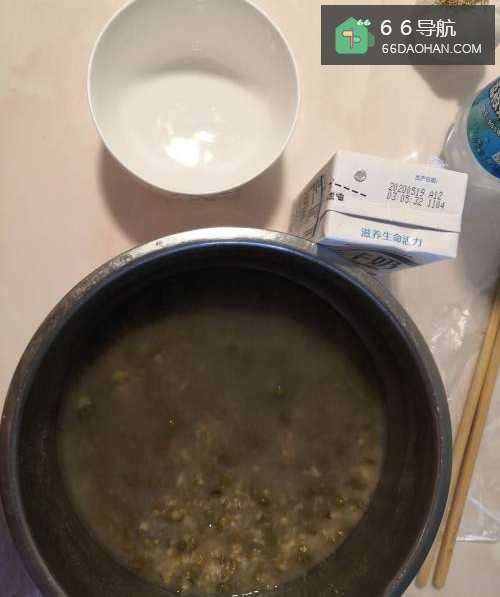 2事先准备好绿豆汤和牛奶,再拿一个空碗和勺。