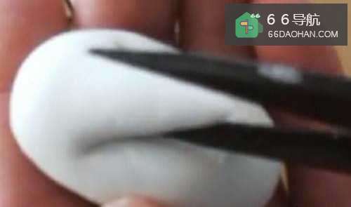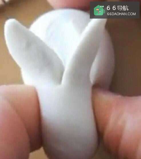 6接下来,在耳朵下方给兔子捏出两个眼睛,用拇指和食指微微向里捏,具体如图所示