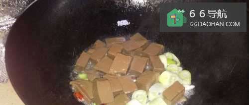 3起锅烧油放葱花和鸭血翻炒,加点白醋或料酒去腥。