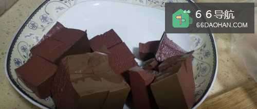 鸭血市场买来的,清洗下切小块,焯水后沥干水分。