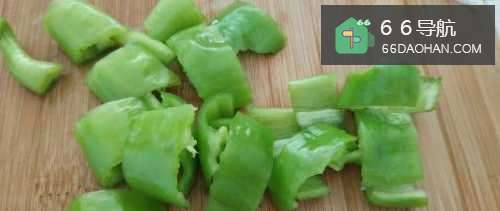 2把准备好的火腿肠切成片、辣椒、葱切成段备用
