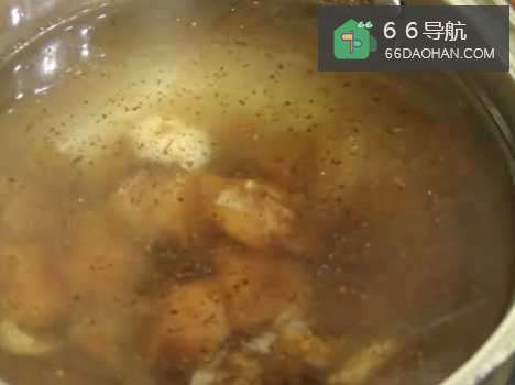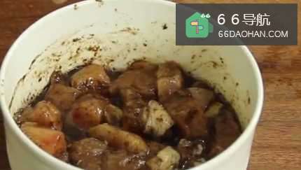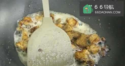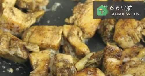 7重新起锅烧油,加入鸡块,把表面炸黄,加入孜然少许