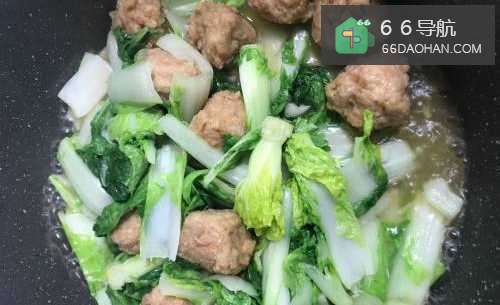 7丸子热透了,就可以关火起锅装盘了,大白菜央烩丸子就做好了。