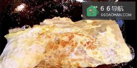 3第三步待冷面稍软,将鸡蛋打在面片上,然后用铲子将鸡蛋摊均匀。