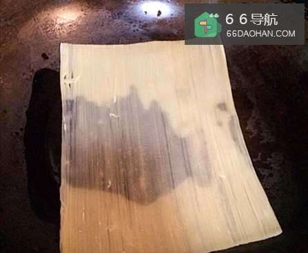 2第二步平底锅上倒入少许油,将冷面放在油锅上煎一下,面片要均匀沾上油。