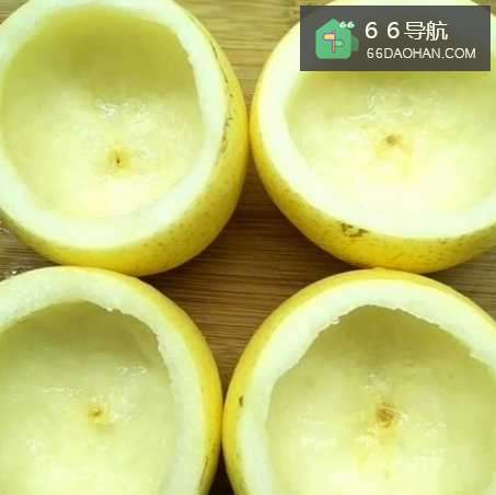 2准备红枣,把准备好的梨从3分之1处切开,挖出中间的梨肉;