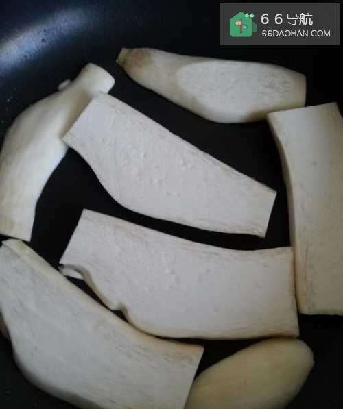3油温五成热时依次放入杏鲍菇,小火开始煎