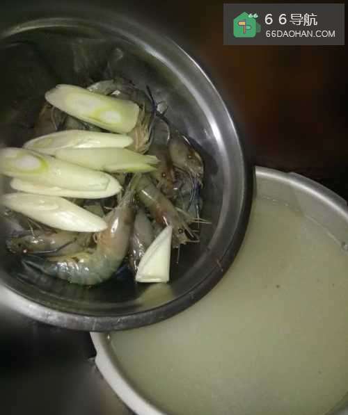 5待锅里食材煮到89分熟时,将大葱和鲜虾下入锅里,一起煮;