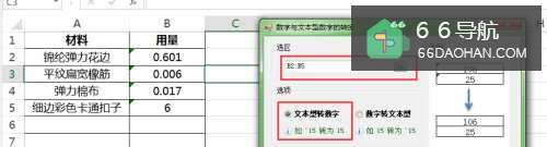 5【数字与文本型数字的转换】对话框中→【区域】B2:B5,【选项】选择“文本型转数字”→单击【确定】