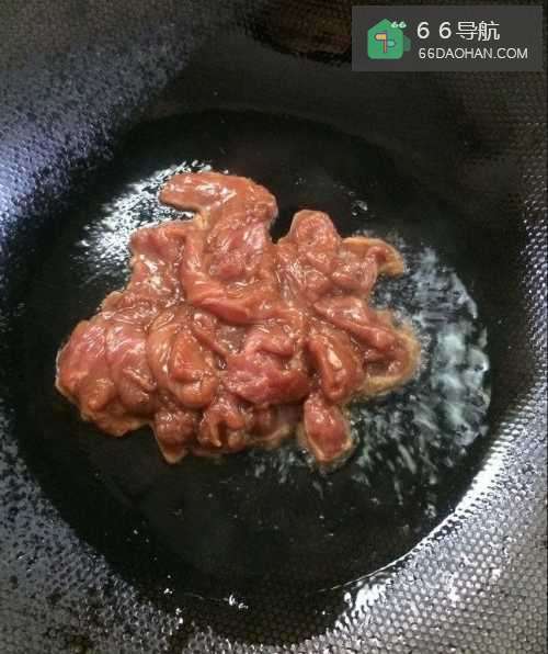 3锅里放油烧热,下肉片翻炒,变色后盛起。