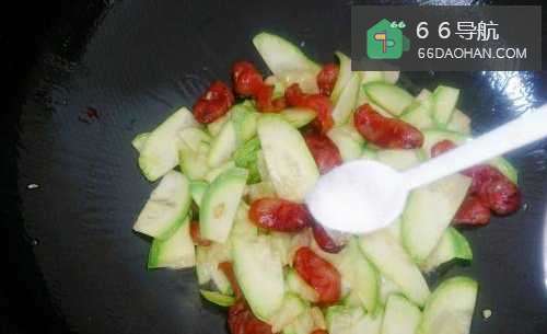 6倒入西葫芦翻炒至断生。