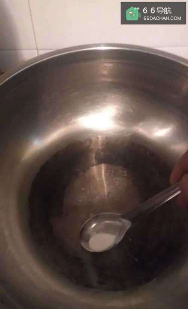 3把锅刷净,调到小火,将面碱放入锅内,慢慢将面碱炒热。