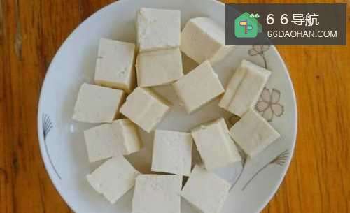 3将豆腐切成宽约2厘米的大块。