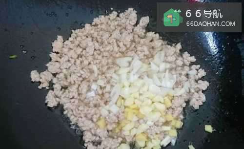 把剁好的肉末倒下去迅速滑炒至变色。