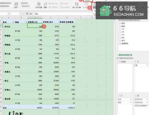 2选择数据透视表任意【单元格】,点击菜单栏的【分析】——【更改数据源】;