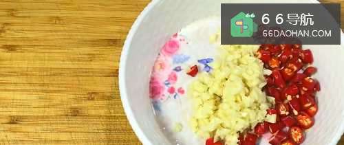 5准备小米辣和蒜粒。