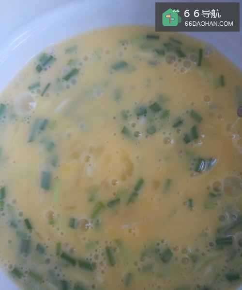 首先把鸡蛋打碎搅拌成蛋液,香葱切碎备用。