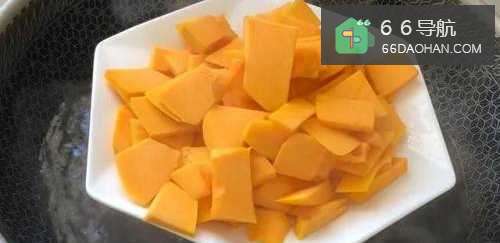 把南瓜去皮去瓤清洗干净后切成薄片,放入碗中上锅蒸熟,大约需要15分钟左右。