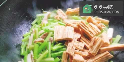 6好吃美味适合养生的杏鲍菇芹菜腐竹炒肉片就做好了。