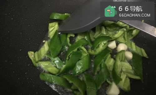 3加入青椒,炒至半熟。