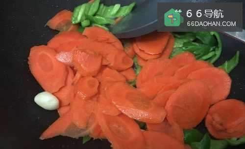 4倒入胡萝卜,翻炒均匀。