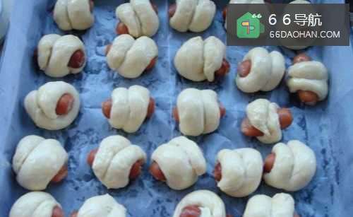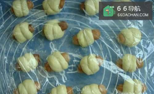 5将做好的肠仔包进行最后发酵40分钟左右;表面刷上蛋液,放入预热好的烤箱烤焙,180度,15分钟左右。