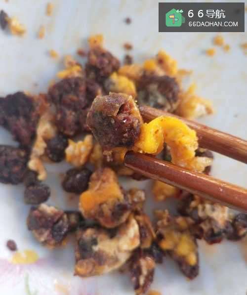 6如图,打入四只野鸡蛋并用铲子翻炒均匀。