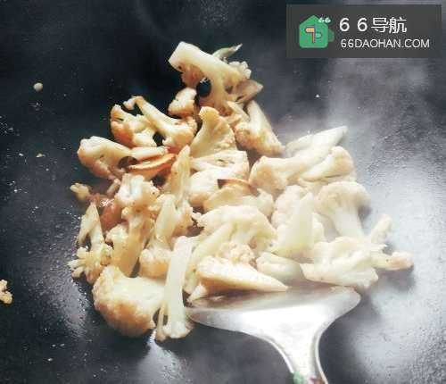 5第五步我们把花子菜放入锅中,开始翻炒,并且放入调料。