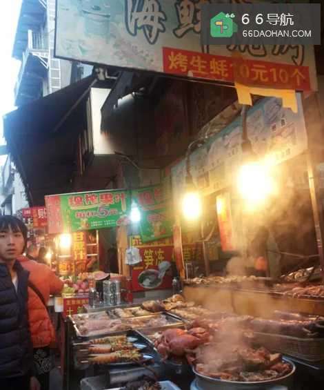 因为临海,所以有很多海鲜类烧烤,比如鱿鱼、生蚝、大闸蟹等等,看起来就特别有食欲。
