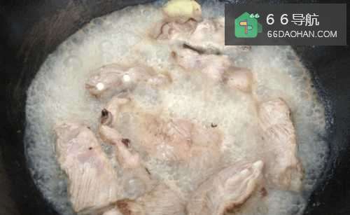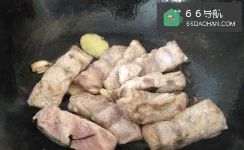 4煮开后从下往上翻动几次排骨,撇去浮沫。