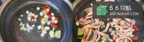 2锅中烧水,将鱿鱼倒入锅中焯水2分钟。