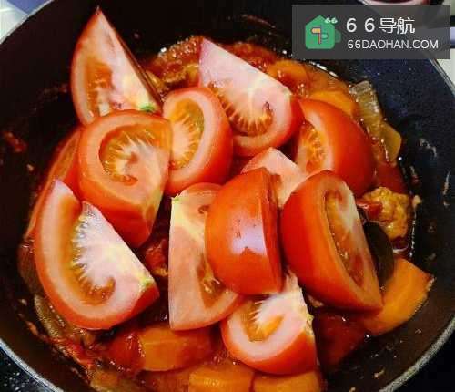 6打开锅盖,加入新鲜的切件番茄拌匀,再煮罪慎510分钟,即成。