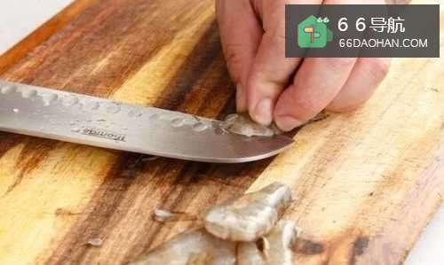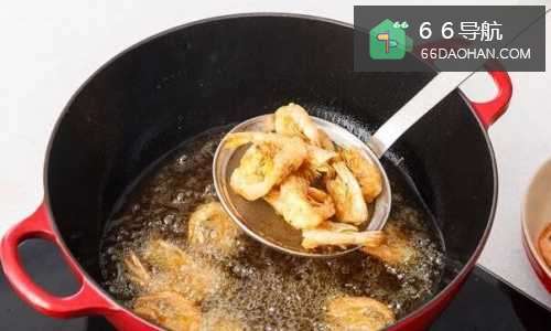 4基围虾放入盐和生粉拌匀,倒入8成油锅炸熟备用。