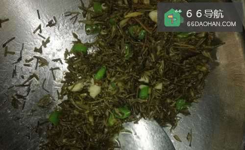 将菱角菜梳理整齐,切成一厘米左右的小段。