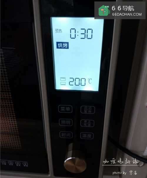 8烤箱启动预热程序将上下火的火力调至200度;我的烤箱上显示的时间是整个烤制的时间,不是预热时间;